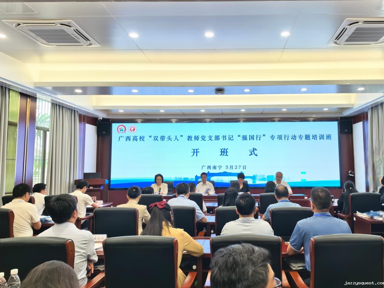 全国高校“双带头人”教师党支部书记“强国行”专项行动办公室常务主任李继红出席开班式并给培训学员作“强国实践,双带有为”专题辅导,鼓励“强国行”团队要立足广西区位优势探索党建联建、科技赋能等路径,深化“强国行”行动内涵,推广创新做法,为全国高校党建提供示范。
