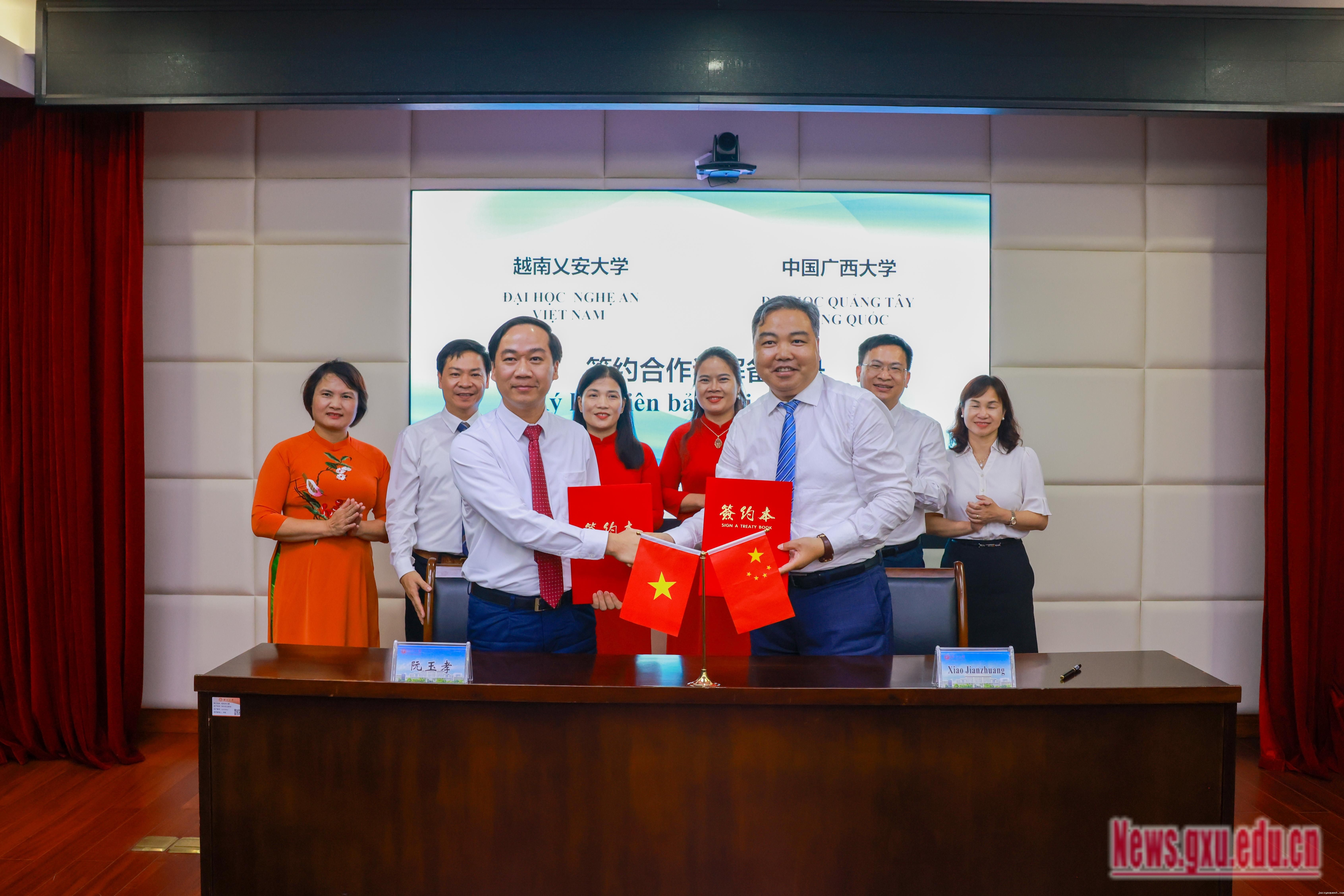 座谈会上,双方围绕共建语言培训中心、建设联合实验室、开展协同研究项目、建立长效师生互换机制、互派教师等展开深入讨论。肖建庄和阮玉孝分别代表我校和乂安大学签署两校合作谅解备忘录。