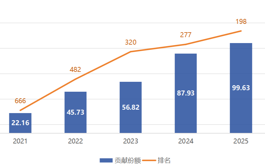 (注:自然指数贡献份额指在特定统计周期内,一篇论文中来自某国家/地区或机构的作者贡献占比,是自然指数显示作者对高质量科研所作贡献的关键指标)