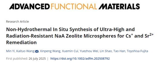近日,我校金属资源高效利用及环境保护协同创新中心在分子筛合成研究方面取得新进展,相关研究成果以“Non-Hydrothermal In-Situ Synthesis of Ultra-High and Radiation-Resistant NaA Zeolite Microspheres for Cs+ and Sr2+ Remediation”为题,发表在Advanced Functional Materials上。该论文由资源环境与材料学院副教授王开拓和化学化工学院博士研究生易敏共同完成,王开拓为唯一通讯作者,taptap苹果安装为第一完成单位。