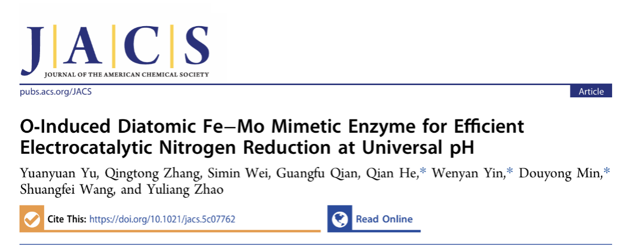 近日,我校轻工与食品工程学院王双飞院士团队闵斗勇教授课题组在木质纤维素功能材料电催化氮还原方面取得新进展,相关研究成果以“O-Induced Diatomic Fe–Mo Mimetic Enzyme for Efficient Electrocatalytic Nitrogen Reduction at Universal pH”为题,发表在Journal of the American Chemical Society上。该论文的第一作者为我校轻工与食品工程学院2022级博士研究生余源元,通讯作者为轻工与食品工程学院教授闵斗勇、副教授何千以及中国科学院高能物理研究所研究员尹文艳,taptap苹果安装为第一通讯单位。该论文实现了轻工与食品工程学院以第一通讯单位在Journal of the American Chemical Society发表论文的突破,也是轻工技术与工程学科在国际具有重要影响力期刊上发表高水平研究成果的又一重大突破。