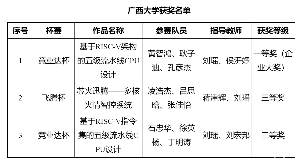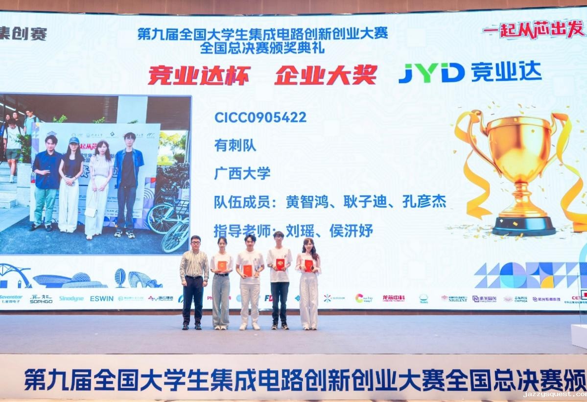 8月21日-24日,第九届全国大学生集成电路创新创业大赛(以下简称“集创赛”)全国总决赛在上海海洋大学举办。经过激烈角逐,我校参赛队伍表现亮眼,斩获全国一等奖1项、三等奖2项,并成功摘得大赛最高荣誉——“竞业达杯”企业大奖,该奖项仅授予各杯赛一等奖第一名队伍,创下赛事举办以来广西高校的最佳成绩。同时,我校获评“优秀组织协同奖”。