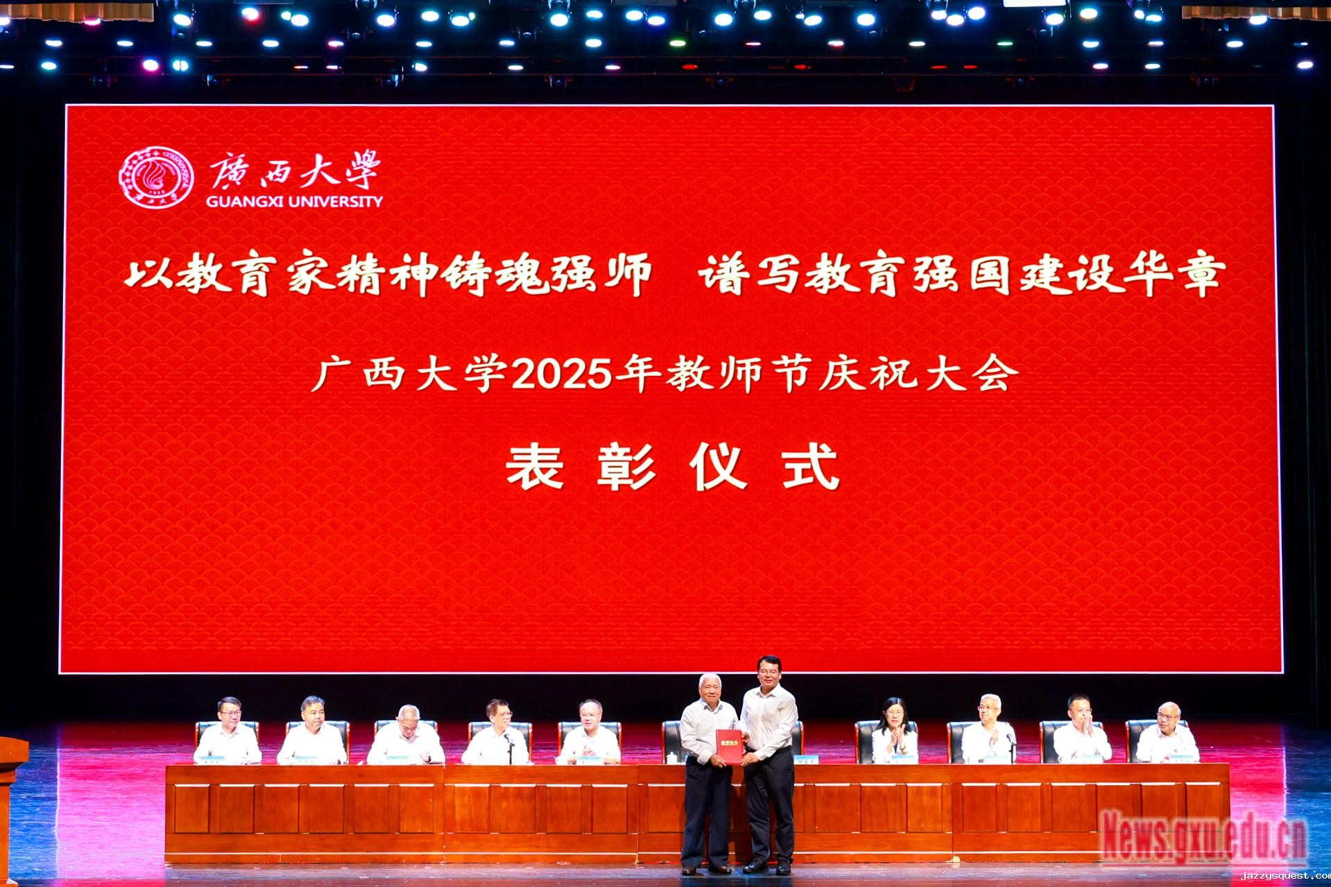 李国忠代表学校向全体教职工致以节日的问候,强调了教育强国建设的重大战略意义以及习近平总书记、中共中央和国务院关于大力弘扬教育家精神、打造支撑教育强国的高素质专业化教师队伍的重要战略部署和指示精神。他全面回顾了过去一年学校在学科建设、科学研究、师资队伍建设与人才培养等方面取得的重要进展与成就,并对进一步加强教师队伍建设、做好教书育人工作提出四点希望:要坚定理想信念,以师者初心筑育人根基;要陶冶道德情操,以高尚师德立教学之本;要厚植大爱情怀,以仁爱之心育芬芳桃李;要深入科研一线,以创新笃行树报国志向。他强调,全体教职工要坚持实干为要、创新为魂,用业绩说话、让人民评价,把服务国家战略和广西经济社会发展作为使命担当,大力弘扬教育家精神和科学家精神,以更加昂扬的斗志、更加扎实的工作,回答好“教育强国、教育强区,jazzysquest何为”的时代命题,为学校高质量发展贡献智慧和力量。