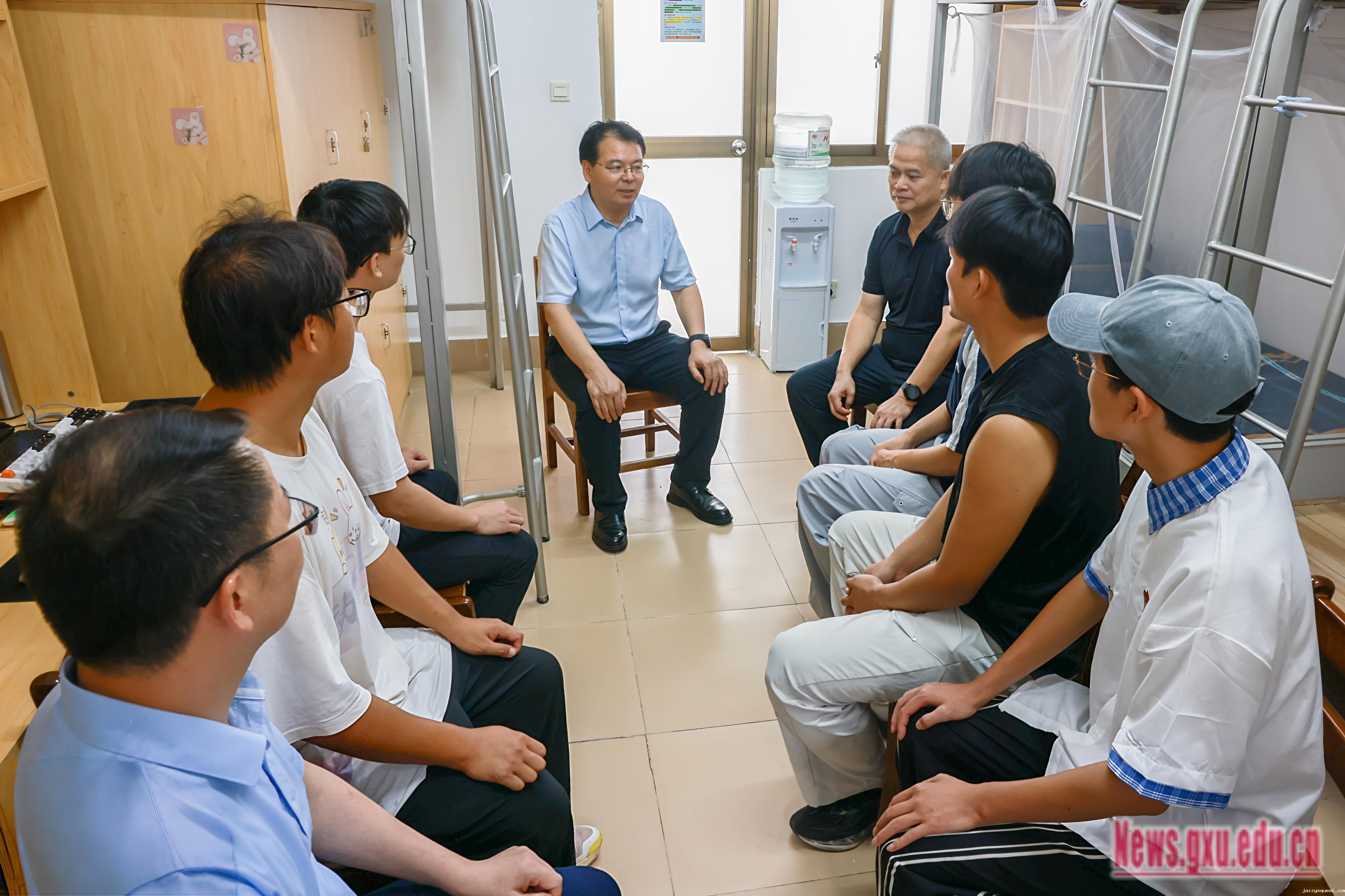 李国忠一行来到学生宿舍,亲切看望已入住的新生。“家乡是哪里的?”“蚊帐准备好了吗?”“生活上还有什么需要?”每到一个宿舍,李国忠都关切地询问同学们的适应情况,与他们围坐在一起话家常、聊学习、谈未来。他鼓励同学们牢固树立专业思想,勤奋学习,为升学和就业做好充分准备;嘱咐大家珍惜同窗情谊,学习互促,多走进教室和图书馆,在互帮互助中共同成长;提醒同学们要认真学习反诈防骗知识,多和家人沟通,提高防范诈骗意识,切实保障人身与财产安全。