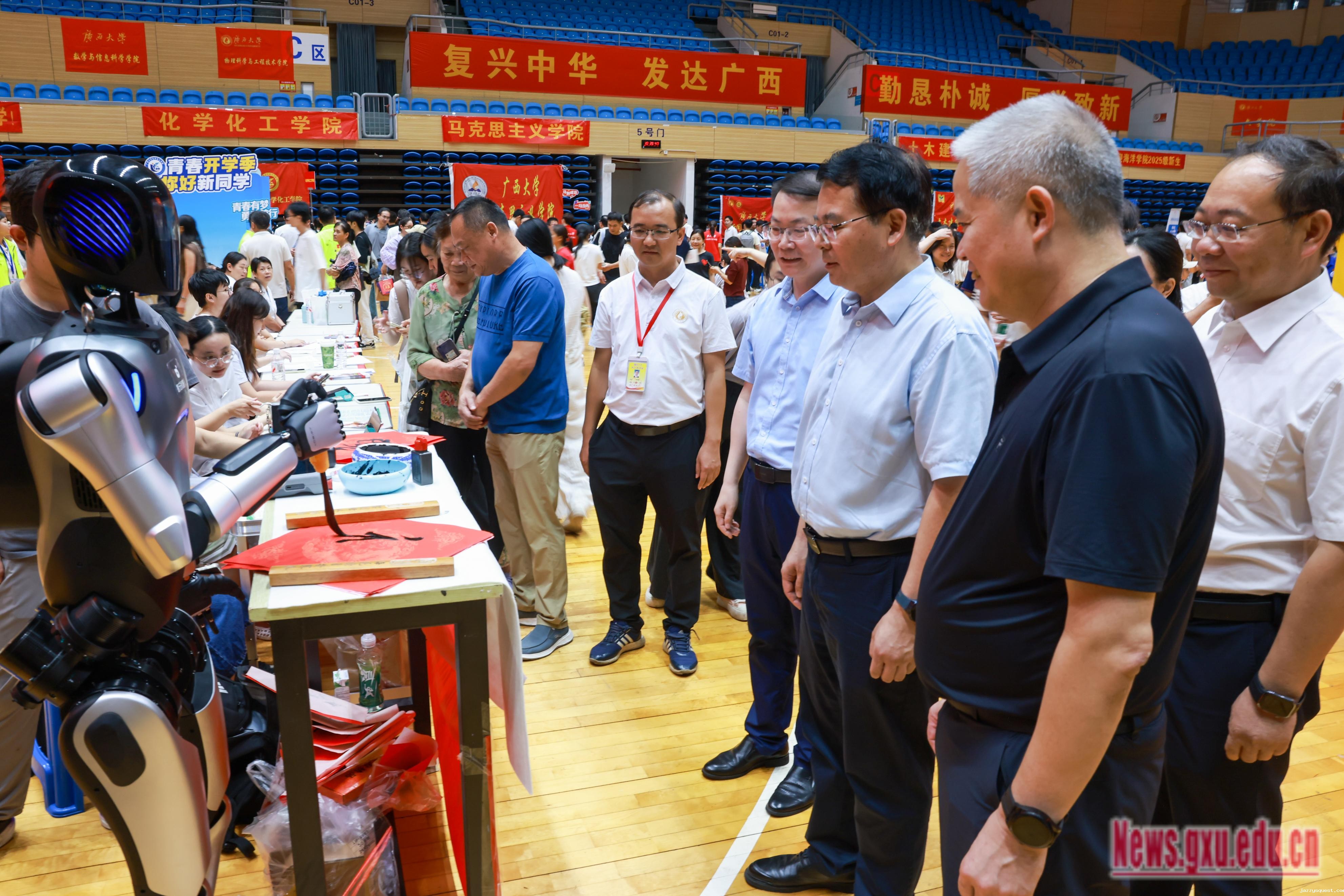 在迎新现场,李国忠逐一走访各学院迎新报到点,实地查看迎新工作进展,详细了解各学院招生计划落实和新生报到情况,并关切询问工作中是否存在困难。他对迎新工作有序推进表示肯定,同时叮嘱各学院要进一步增强服务意识,加强协同配合,优化工作流程,确保新生报到工作高效、顺畅、温馨。