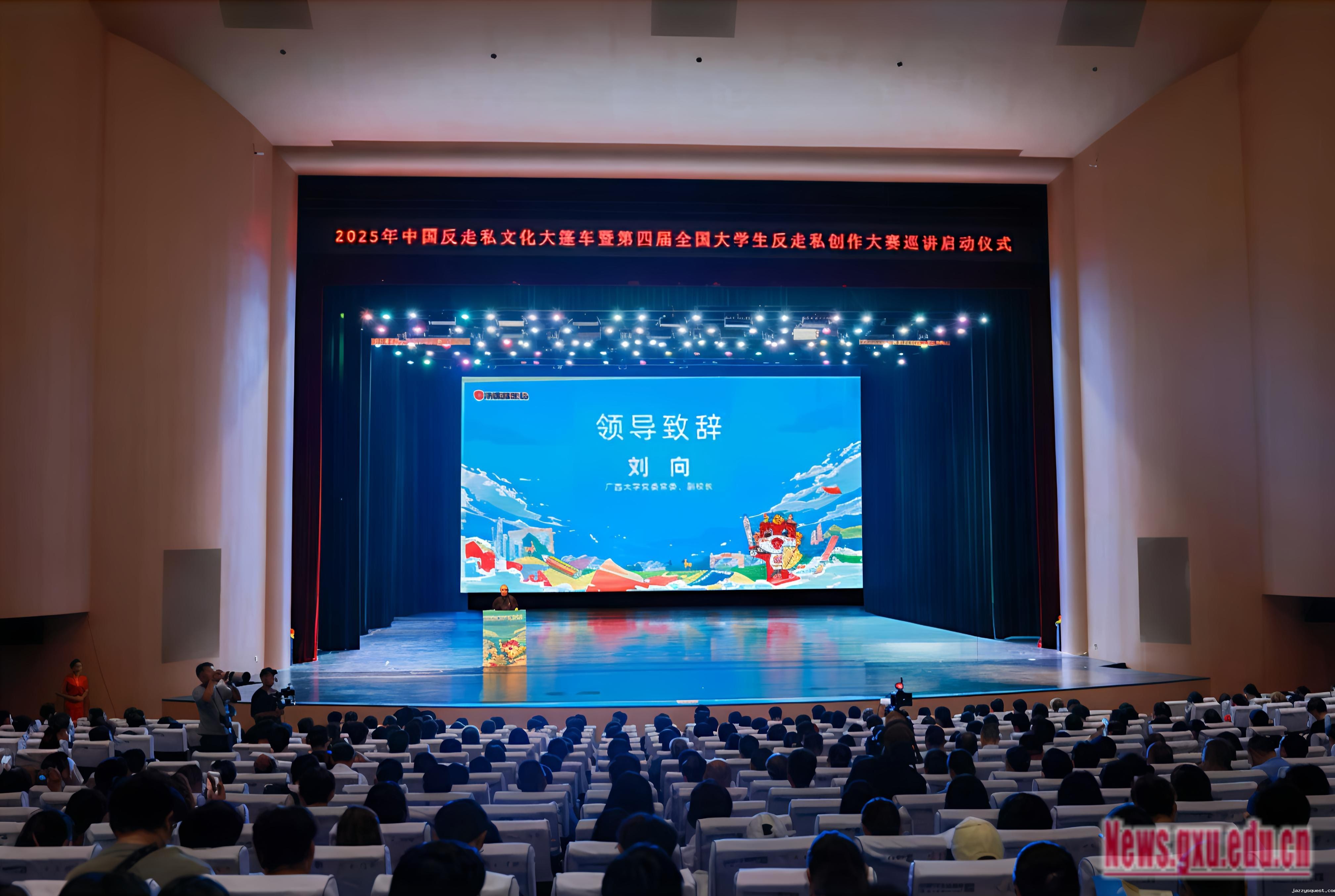 为进一步巩固广西反走私综合治理成效,引导广大青年群体树立反走私意识,提升法治素养,营造全民参与反走私的良好社会氛围,9月19日,“阳光下的守护”2025年中国反走私文化大篷车暨第四届全国大学生反走私创作大赛巡讲启动仪式在我校举行。校党委常委、副校长刘向出席活动并致辞。
