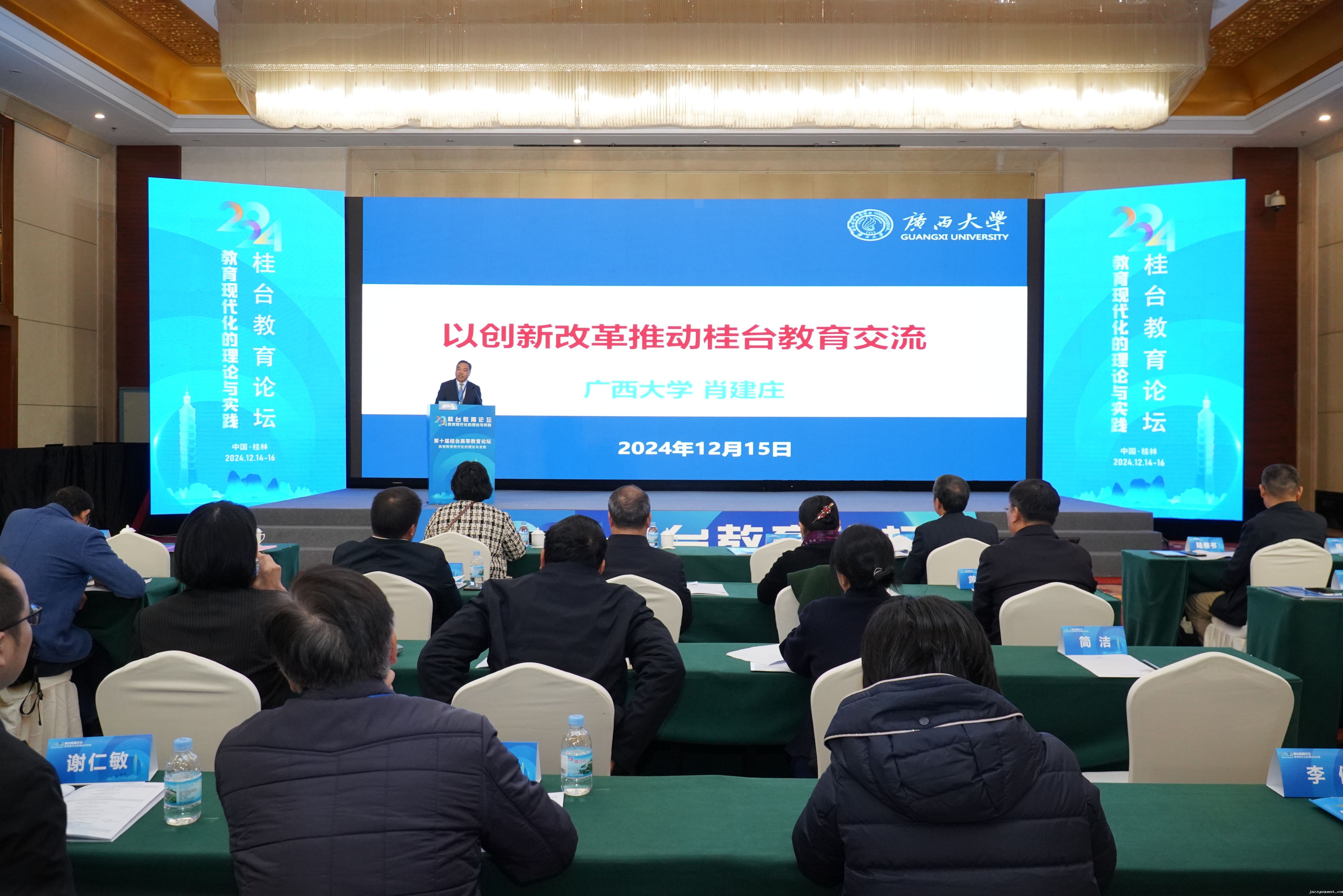 12月15日,2024年桂台教育论坛在桂林召开。自治区教育厅副厅长伍锦昌、广西师范大学校长孙杰远、台湾圣约翰科技大学校长唐彦博出席开幕式并致辞。我校党委常委、副校长肖建庄受邀出席会议,并在第十届桂台高等教育论坛作题为“以创新改革推动桂台教育交流”的主题报告。