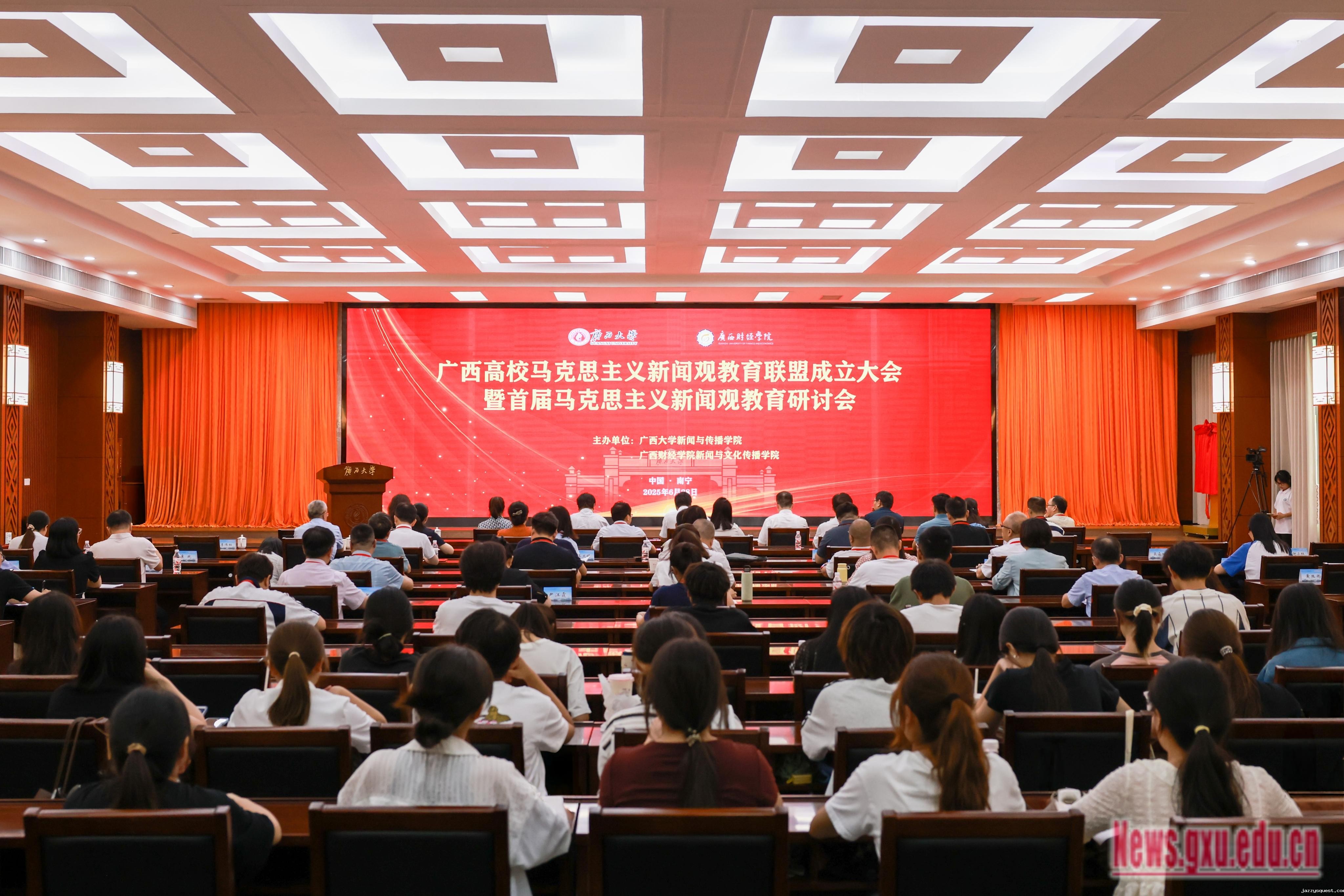 6月28日,由我校新闻与传播学院、广西财经学院新闻与文化传播学院主办的“广西高校马克思主义新闻观教育联盟成立大会暨首届马克思主义新闻观教育研讨会”在君武馆玉林厅举办。自治区党委宣传部副部长、自治区政府新闻办主任黎攀,中国社会科学院新闻所原所长、研究员尹韵公,校党委常委、副校长赵双良,自治区教育厅高教处副处长罗恒,以及中国人民大学、复旦大学、暨南大学、厦门大学、西南政法大学等区外高校马克思主义新闻观教育专家、区内联盟高校师生代表欢聚一堂,共守马克思主义新闻观的精神高地,共绘广西新闻教育发展的壮美画卷。