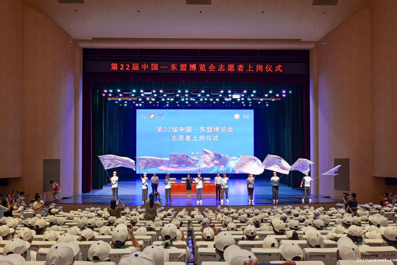 9月7日,第22届中国—东盟博览会志愿者上岗仪式在我校举行。共青团广西区委副书记左向蕾、广西国际博览事务局副局长成功、我校党委副书记汤志华,以及来自8所驻邕高校的863名志愿者参加上岗仪式。