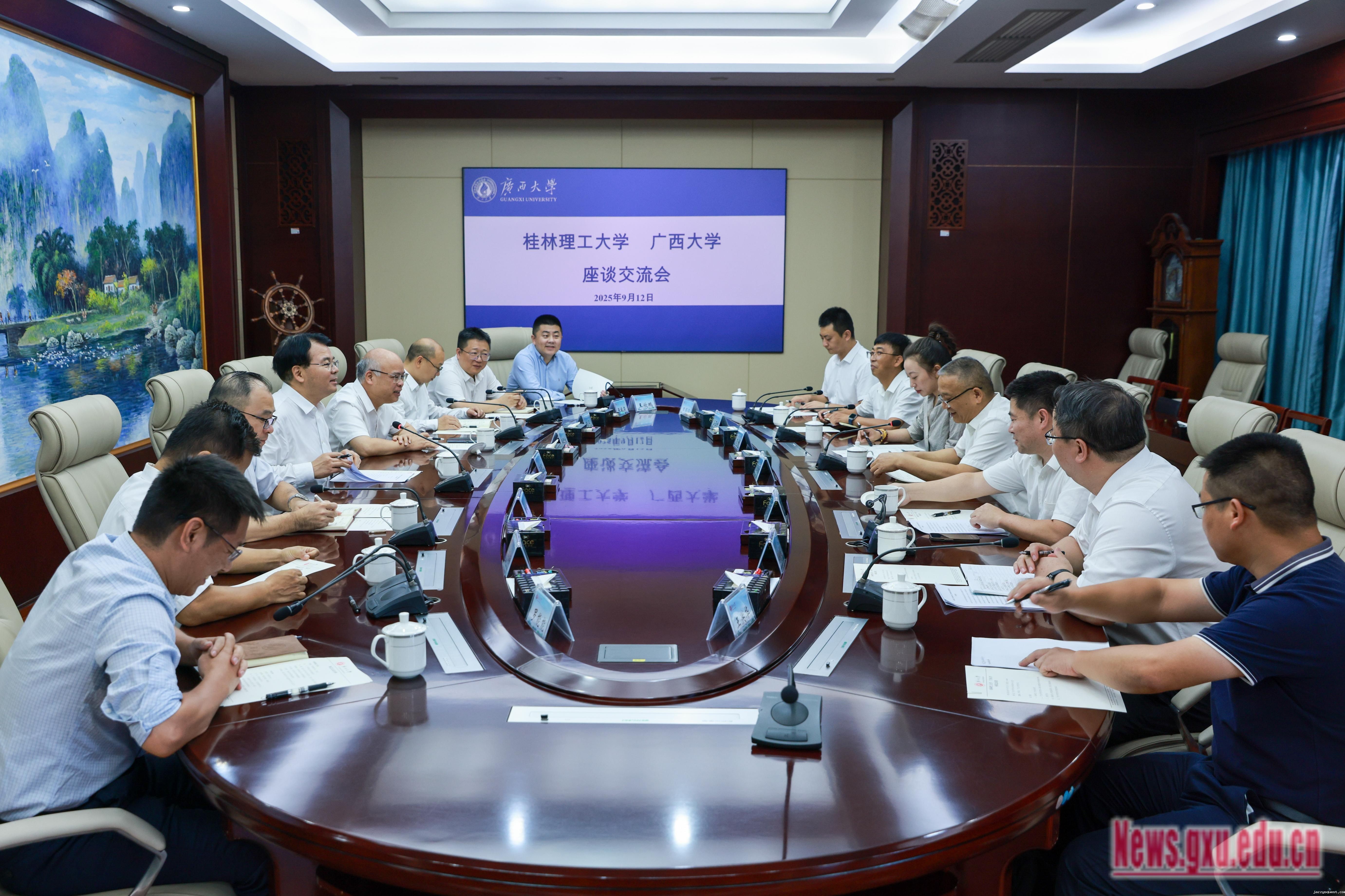 9月12日,桂林理工大学党委副书记、校长王敦球一行到校调研交流。校党委书记李国忠主持座谈会,校党委常委、副校长梁恩维出席会议。