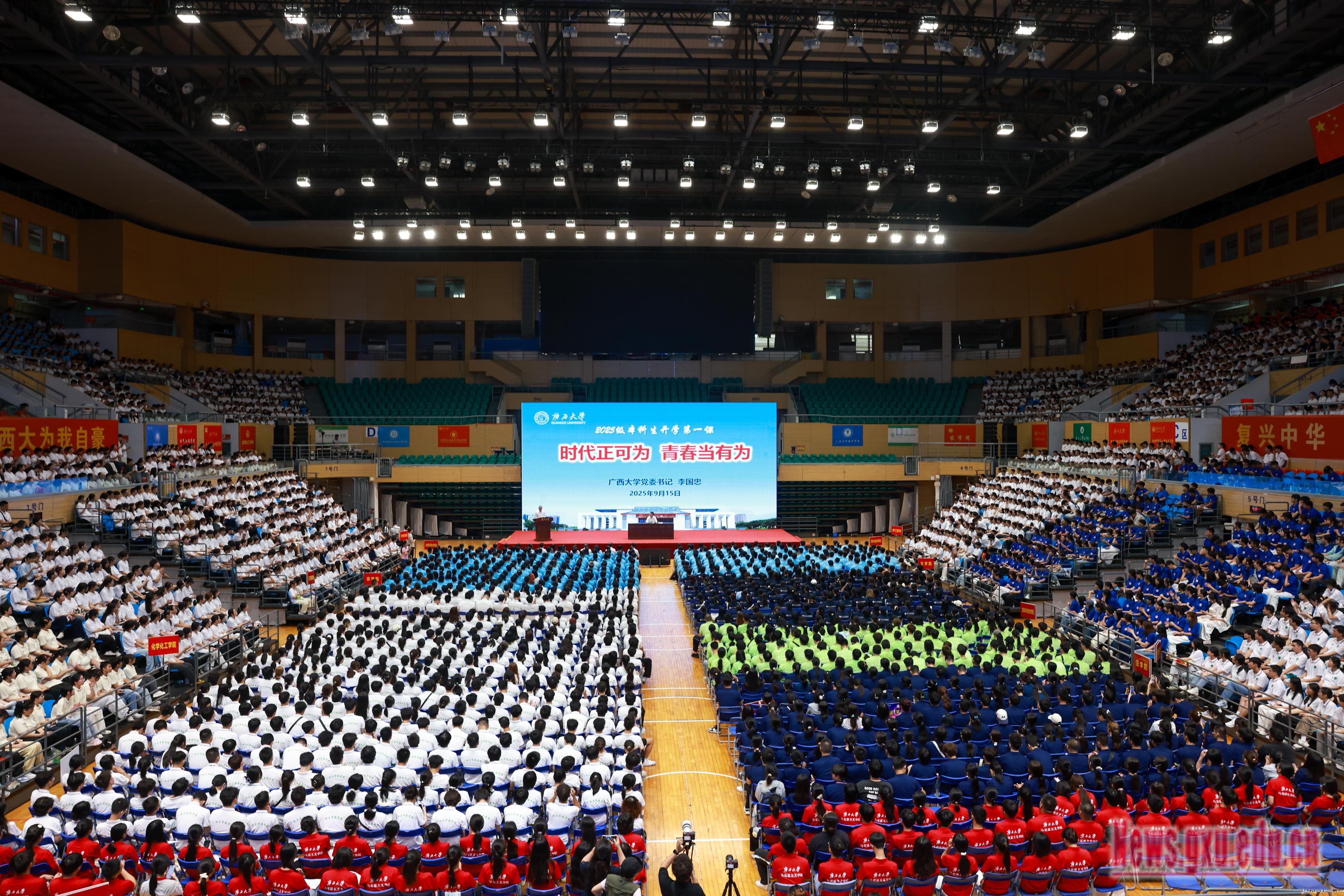 9月15日,我校2025级新生“开学第一课”在西校园综合体育馆开讲。校党委书记李国忠以“时代正可为 青春当有为”为题给2025级全体本科生授课。校党委常委、副校长赵双良以“以学术创新点燃青春强国梦”为题给2025级全体研究生授课。校党委常委、副校长刘向主持本科新生“开学第一课”。