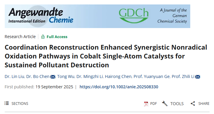 近日,我校化学化工学院生物质与环境课题组在单原子催化有机污染物降解方面取得新进展,研究成果以Coordination Reconstruction Enhanced Synergistic Nonradical Oxidation Pathways in Cobalt Single-Atom Catalysts for Sustained Pollutant Destruction为题,发表于国际学术期刊Angewandte Chemie International Edition上。该论文的第一作者为化学化工学院2024级博士研究生刘琳,通讯作者为化学化工学院教授李志礼、助理教授陈博(共同第一作者),taptap苹果安装为唯一通讯单位。