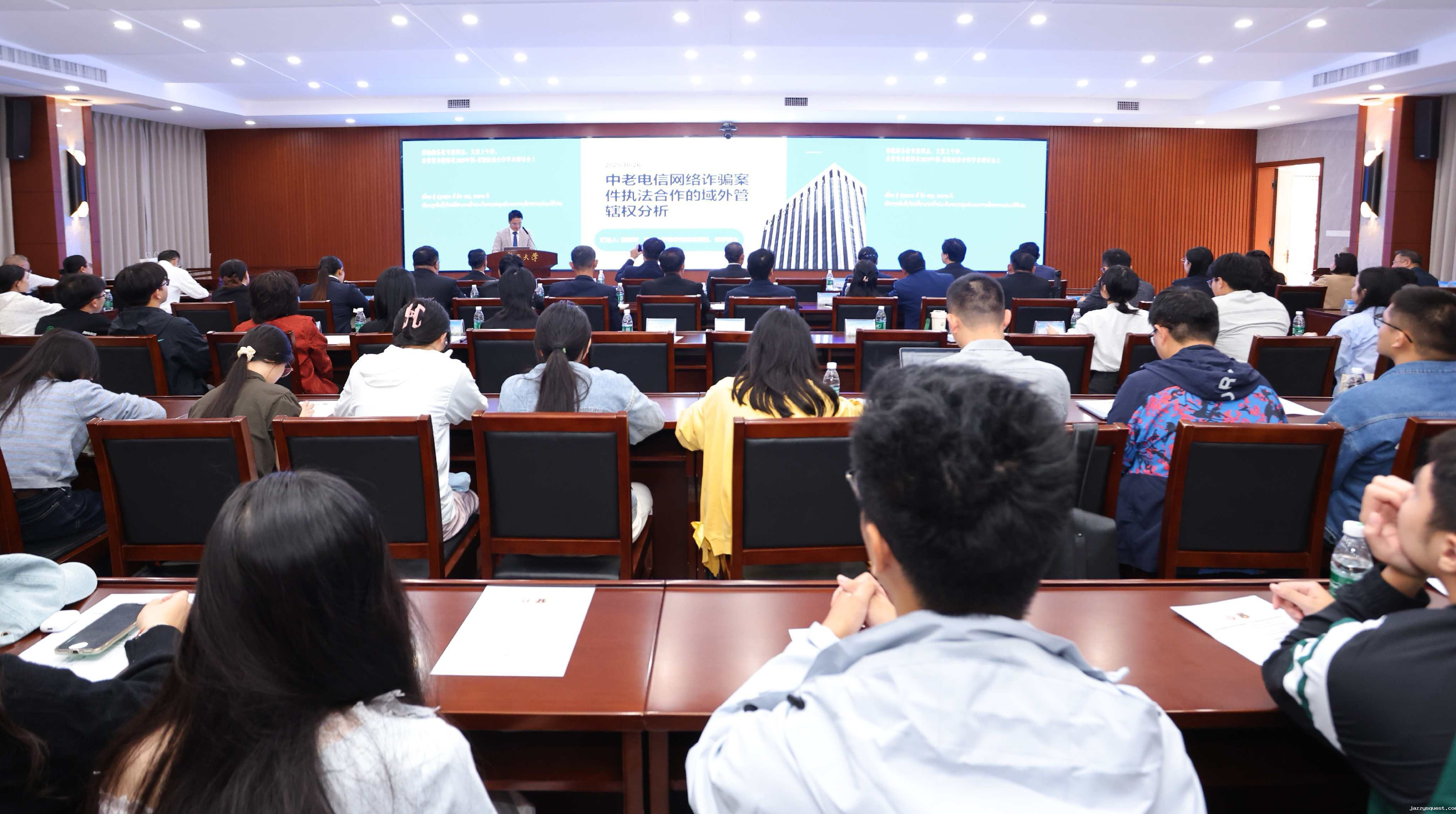 研讨会以“法治协同赋能中老命运共同体建设”为主题,聚焦中国老挝法治协同机制建设。中老双方的检察官、学者、律师等围绕中老检察机关职能比较、电信诈骗案件的域外管辖等主题分享了案例经验与研究成果。期间还举行了老挝最高人民检察院第七期检察官研修班结业仪式。此次研讨会为双方搭建了实务与学术的交流平台,为中老命运共同体建设贡献法治协作力量。