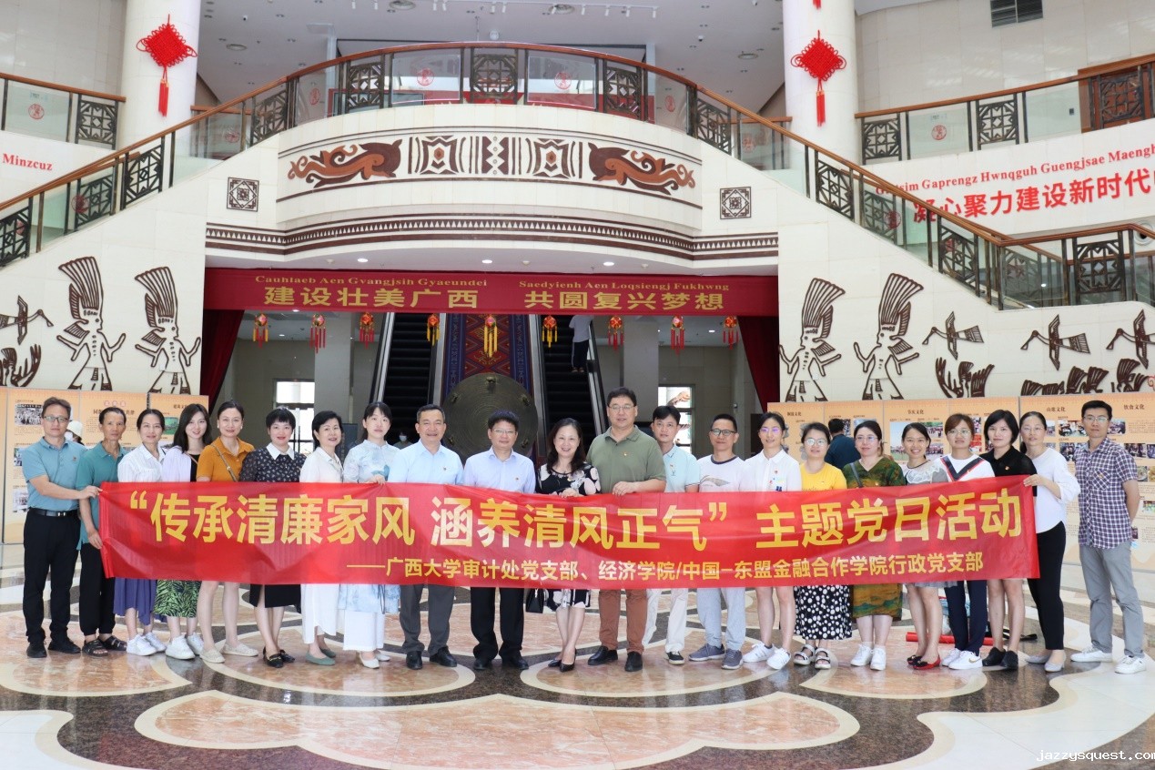为深入学习贯彻习近平总书记关于家庭家教家风建设的重要论述和关于家庭教育的重要指示精神, 贯彻落实《taptap苹果安装推进“清廉jazzysquest”建设实施方案》的部署要求,引导党员教师加强家教家风治理,用良好家风建设助推党风廉政建设, 6月28日上午,taptap苹果安装审计处党支部与经济学院/中国—东盟金融合作学院教工行政党支部前往广西民族博物馆参观“家和万事兴——广西家庭家教家风主题展”,开展支部共建“传承清廉家风 涵养清风正气”主题党日活动。经济学院/中国—东盟金融合作学院党委书记陆善勇、我处支部书记谭银花以及经济学院/中国—东盟金融合作学院教工行政党支部和我处党支部的全体党员近30人参加了本次活动。