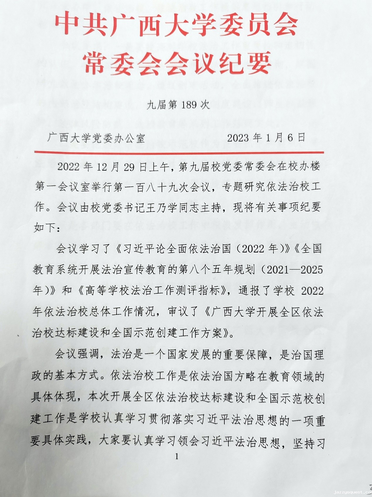2022年12月29日,学校党委召开常委会,专题研究依法治校工作。形成了以下会议纪要: