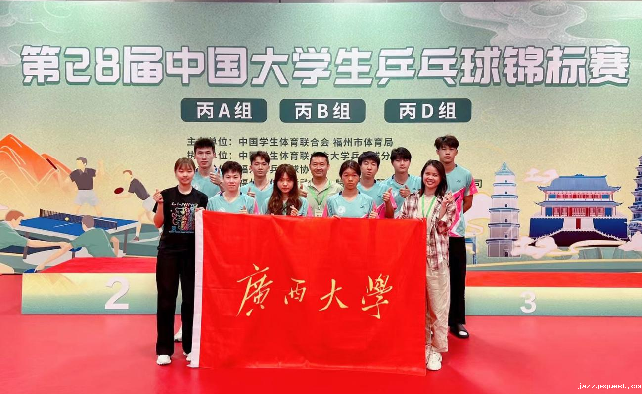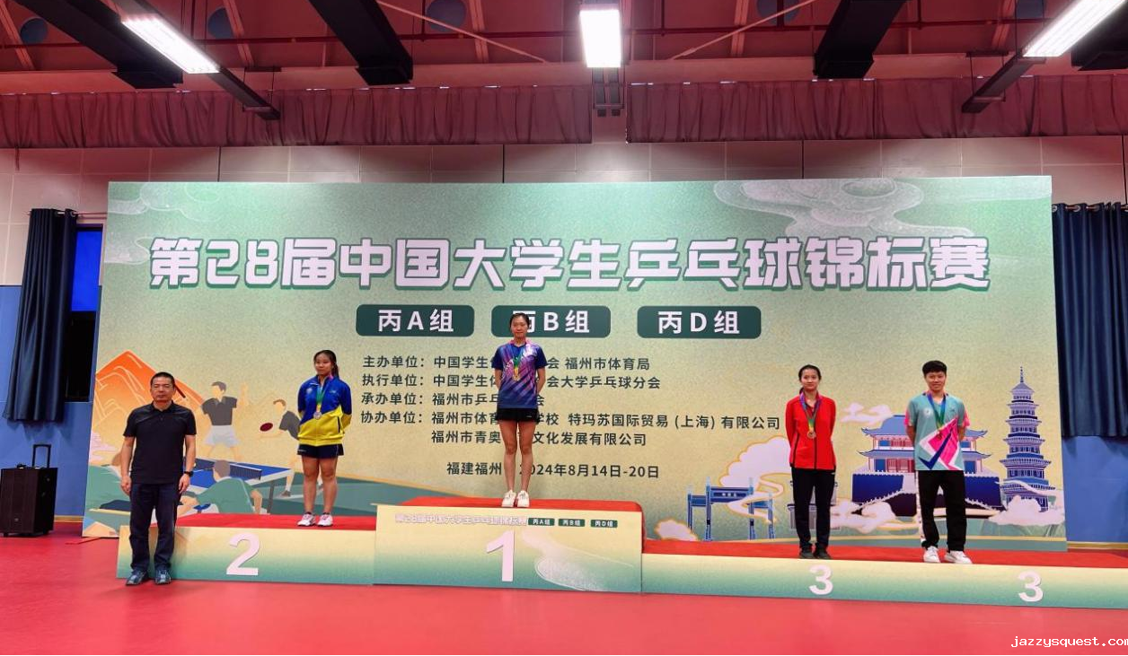 8月14日至20日,由中国学生体育联合会和福州市体育局联合主办的第28届中国大学生乒乓球锦标赛在福建福州举行,我校乒乓球队分获男子团体、女子团体第五名,队员张国锐荣获女子单打季军,实现了我校在国家级大赛单打项目上零奖牌的突破。