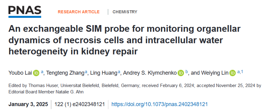 近期,我校化学化工学院探针与化学生物学团队在超高分辨探针领域获重要成果。该成果以“An exchangeable SIM probe for monitoring organellar dynamics of necrosis cells and intracellular water heterogeneity in kidney repair”为题发表在国际顶级综合性学术期刊《美国科学院院刊》(PNAS)上。论文的第一作者为化学化工学院博士研究生赖有博,通讯作者为化学化工学院教授林伟英,taptap苹果安装为该论文的第一通讯单位。